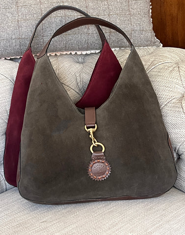 Named after one or our favourite islands, Skye also has lots of heritage details - the Black is a softly grained leather, with Black faux suede lining and detachable zipped pouch, whilst the Tan suede, has matching leather shoulder strap and base, and detachable leather zip pouch, with Black faux suede lining.